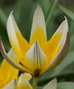 Wildflower Tulip Bronze Charm (Tulipa batalinii Bronze Charm) packs a lot of color for its diminutive size. The flower emerges in May as a beautiful, almost rose-like, bud in apricot-gold. As its leaves unfurl, we see the yellow to salmon petals tinged with bronze. At 4-6″ tall, plant ‘Bronze Charm’ with other wildflower tulips, in a rock garden or along a garden edge where they can delight the eye and naturalize (spread) in future years. Wildflower tulips are the only tulips that are deer resistant.