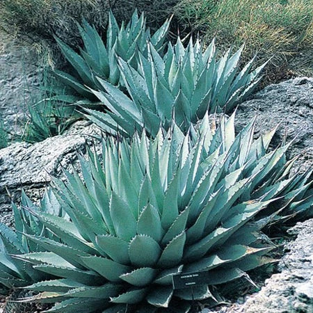18″ tall x 18-30″ wide. High Country’s form of Agave parryi comes from the high cold desert near Flagstaff, Arizona. It is exceptionally cold hardy with thick silver-gray leaves that grow to form a large sized rosette when mature.