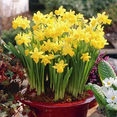 Narcissus ‘Tete-a-Tete’ (Daffodil) is a perky little heirloom daffodil that has fragrant buttercup-yellow petals and yellow-orange cups. With 2 to 3 flowers per stem, ‘Tete-a-Tete’ is a prolific bloomer that forms large colonies.